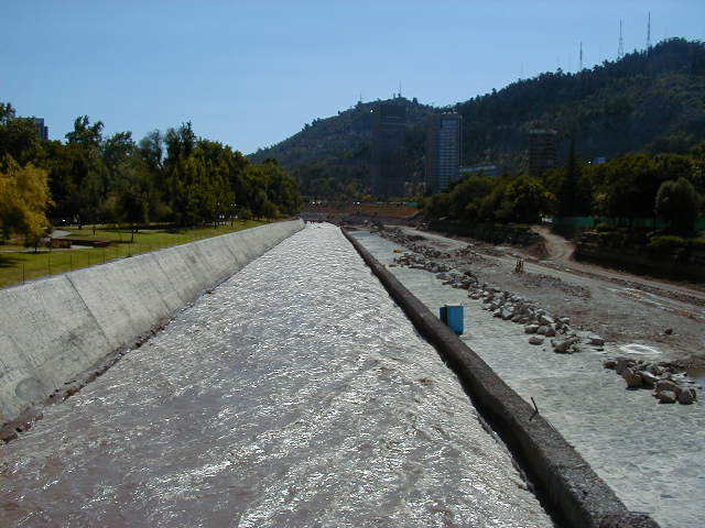 Day 2 - Wednesday - Walking Santiago Nothing is open on New Year's Day. Robbed of the opportunity to go shopping for knick-knacks, we head for San Cristobal hill. It takes four hours to hike to the top, but it gives us a commanding view of the city. Coming down, we admire the shimmering river of raw sewage that runs through the center of Santiago. In