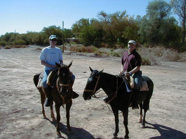 Day 5 - Saturday - Riding Atacama I'm psyched - we can go horseback riding through the desert. Horses are a common sight in rural Chile. Atacama only recently gained 24 hour electricity (you can see the shiny new wires in the background of the horse picture), and manure is carted away not by truck, but by burro. In the afternoon we mountain bike ten miles over bumpy, sandy salt