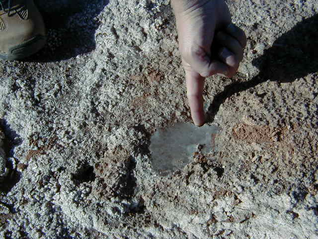 of the lake are encrusted with a solid inch of crystallized salt.