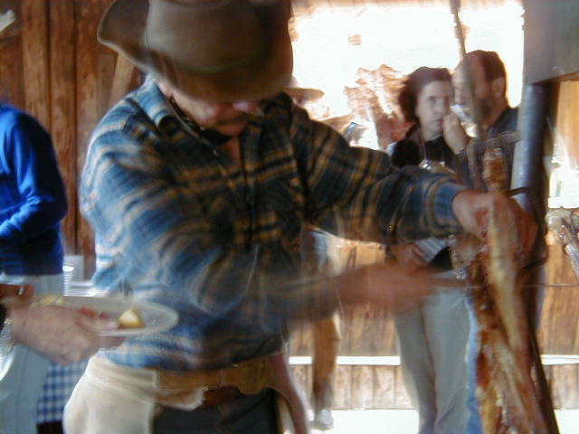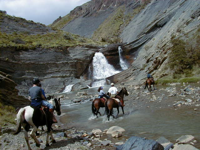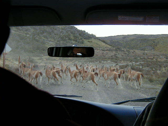 Day 12 - Saturday - Riding Paine del Torres More horses! Mathieu is the first in line to sign up for "Advanced Patagonian Horseback Riding With Lots Of Galloping". Okay... so it didn't say "with lots of galloping", but that's what we did! My horse's name is Marengo, he is four years old, and boy does he like to run! His mom is also in our group, and they like to race each other. We galloped all the way to this ranch where there were cute puppies. Back at the corral, there's lamb roasting. We're served a quick lunch, and then it's time for a leisurely afternoon ride. We ride past a waterfall, up a steep hill to a farm house where we saw a few Patagonian condors. On the van ride back, I muse to myself: To be in Patagonia is to be surrounded by life. Sometimes literally surrounded. The guanacos (pronounced wah-knock-ohs, related to llamas) are to Patagonia what seagulls are to New England. ... and so with thoughts of home tugging at my cerebellum, I say